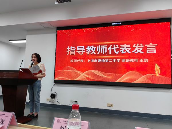 颁奖结束后,来自上海市曹杨第二中学的教师代表王韵发言,表达了对曾在bwin必赢国际中国官方网站求学岁月的怀念,期盼通过本次微小说创作比赛与同学们共同成长,记录青春的美好时光。