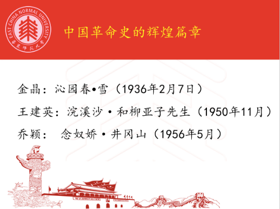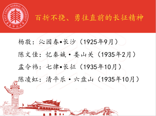 支部党员选取毛泽东同志创作的反映中国共产党人奋斗历程以及中国革命辉煌历史的七个篇章,介绍了诗人创作这些诗词的时代背景以及社会现实。