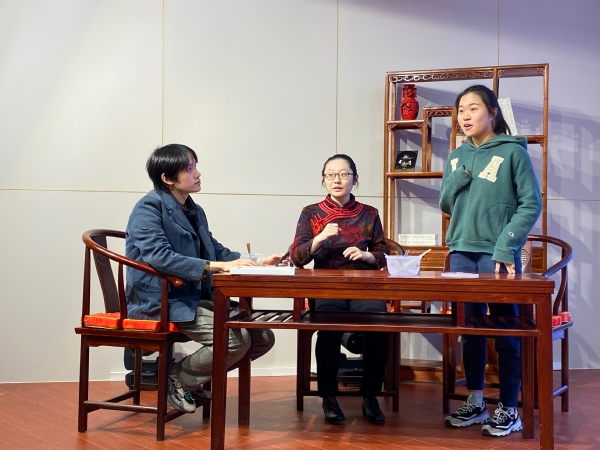 “团队比赛最看重的不是个人能力,而是整体的沟通与协作,这次比赛的成功与我们团队齐心、信心和凝聚密不可分。”回顾参赛过程,作为队长的唐艺馨同学分享了“参赛宝典”。团队中的三位成员分别来自不同的学科和不同的校区,但是从前期准备到最终呈现,他们始终坚持齐心协力,按照各自的兴趣特长认领任务、充分发挥各自优势、提高效率。面对突发疫情导致的赛制规则的改变,同学们“临危不乱”,在老师的鼓励和指导下迅速调整分工,从声光、走位、台词、运镜等细节入手,认真打磨舞台呈现效果,最终参赛作品被评委称赞为全场最佳。同时,“后援团”凝聚起的专业力量也成为团队“出奇制胜”的法宝。在赛前,富有比赛经验的学长学姐主动来为团队传经送宝,大学英语教学部的指导老师积极为团队出谋划策。从十月中旬开始补习理论知识,精心设计与打磨案例的每一个细节,到赛前一晚李辉老师的反复叮嘱,都让同学们感到暖心、安心与信心。团队成员表示,赛后将做好资料与经验的总结和复盘,鼎力相助明年参赛的学弟学妹们,期待学校可以在这项比赛上再创佳绩。