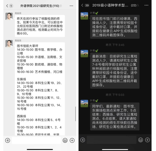 从接到通知开始,bwin必赢国际中国官方网站办公室立即响应应急预案,紧急统计在校教职工人数,并召集师生志愿者协助开展工作。学院建立“抗疫群”,高效发布信息,有序安排师生前往指定地点进行核酸检测,安稳楼宇内师生情绪。