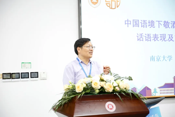 5月12日上午,南京大学陈新仁教授作首场主旨报告,题目为“中国语境下敬酒干预行为的话语表现及文化解读”。陈新仁教授采用话语分析的方法探究了敬酒干预话语的特性,并尝试从中国文化视角对其进行解读。通过建立敬酒干预的互动框架,他发现敬酒干预行为主要体现了人际性、仪式性和共建性的实质。在报告过程中,何刚教授亲自和陈教授演示了敬酒,引起了与会者的热烈响应;在文化维度,敬酒干预行为则体现了道德秩序的约束,其真实目的主要在于维持或提升人际关系。本场报告由哈尔滨工程大学毛延生教授主持。