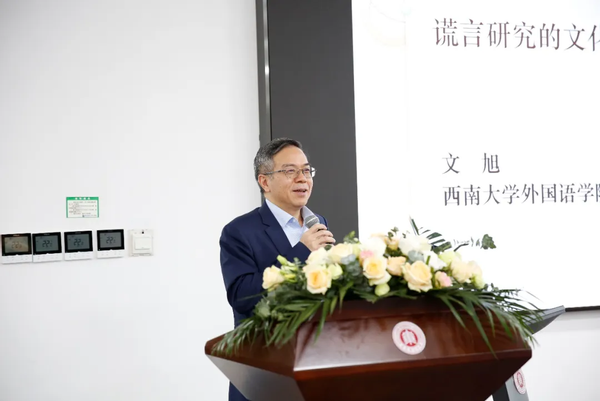 首先发言的西南大学文旭教授在“谎言研究的文化语用学视角”的报告中指出,谎言在政治话语中俯拾皆是,日常生活中也充满着谎言,撒谎是人的第二天性,现实生活中充满着谎言,无法回避,必须面对。他从文化语用学视角出发,探讨了文化规范、价值观、信念、文化脚本、语境因素等如何影响谎言的产生、理解,并解释了谎言产生的语境原因和,提出并解释了识别谎言可以依赖的诚信原则,希望能为了解谎言的特征和本质甚至人类的本性提供参考。本报告由我校思勉研究院毕业的校友、电子科技大学李宪博博士主持。