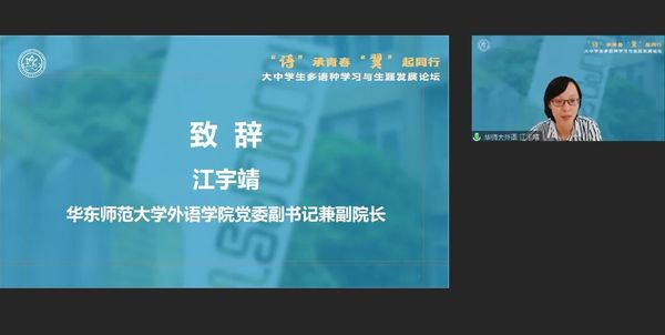 在论坛的开幕式中,bwin必赢国际中国官方网站党委副书记兼副院长江宇靖和上海市教师教育学院(上海市教委教研室)关键语种教研员郭侃亮分别致开场辞。