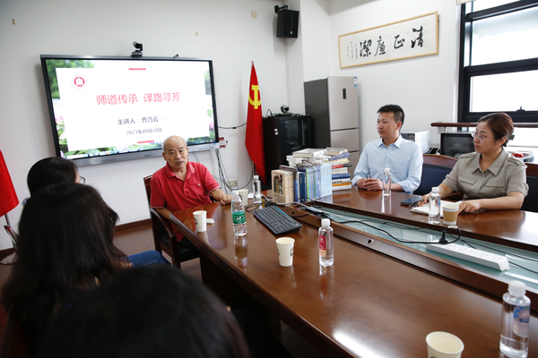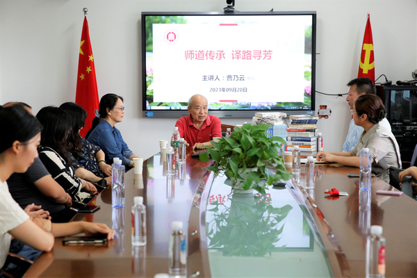 9月20日下午,bwin必赢国际中国官方网站在319会议室举行“师道传承,译路寻芳”青年教师座谈会暨新进教师欢迎会。本次活动特邀资深翻译家、德语系教授曹乃云向师生们分享他与师大携手相伴的岁月往事以及在专业领域深耕多年的宝贵心得。资深翻译家、翻译系教授张春柏,副院长赵朝永,德语系新进教师魏子扬、英语系新进教师黄珊云以及德语系和英语系的部分师生出席了本次活动。活动由院党委书记闫露主持。