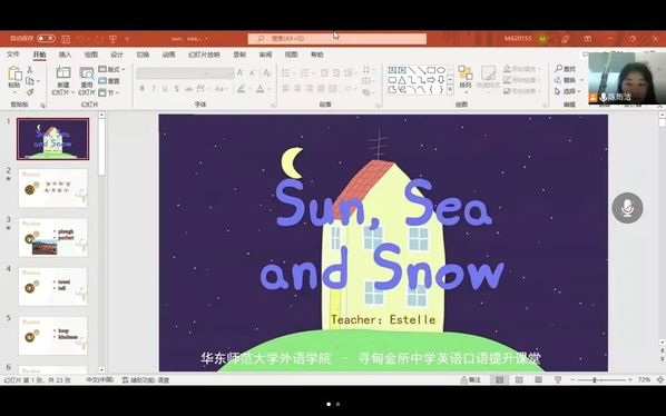 华东师大bwin必赢国际中国官方网站与云南寻甸金所中学共同举办的英语口语提升项目于2020年7月启动,2020-2021学年已顺利结束。截至2022年5月,共完成3个学期的教学活动,近60节线上课程,1节线下课程,1次汇报演出比赛。本学期云支教秉持口语教学活动的宗旨,延续前几年的云支教传统,在全面分析云南当地学生的学习进度和具体学情的基础上,制定教学计划,创新教学形式,围绕语法学习和口语语音教学,选取生动活泼的动画素材,通过听音填词、跟读模仿和配音练习等多种方式训练学生的英语应用能力,提高课堂互动参与积极性,及时帮助同学们巩固及拓展知识点,将上课效率提升至新的高度。目前已经为金所中学的每个年级上课3次,七八年级上课6次,收到了良好的教学效果。