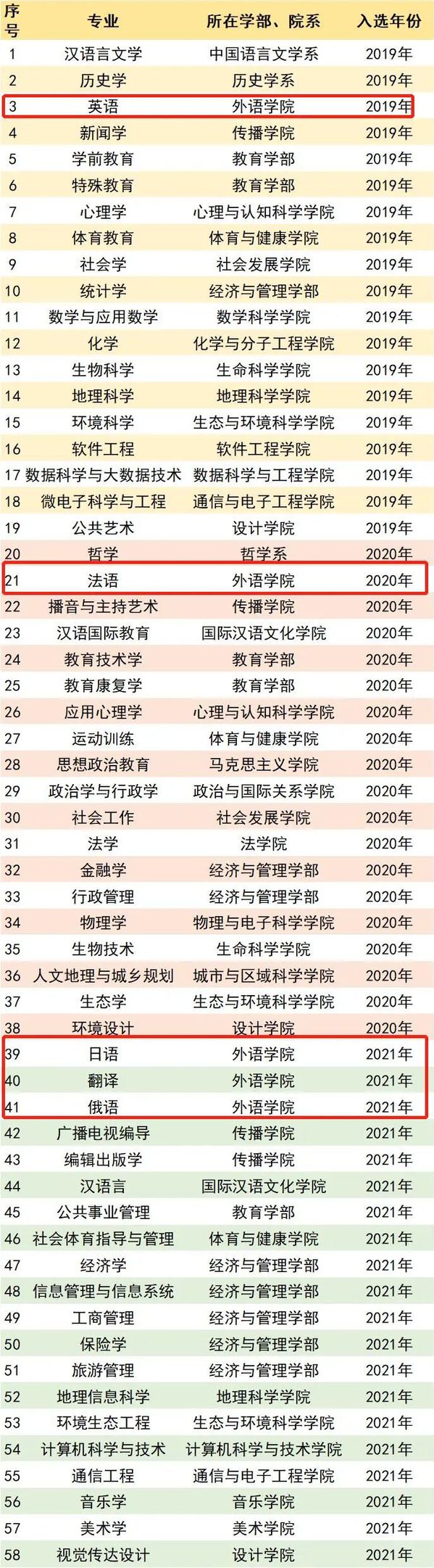 近日,教育部办公厅正式公布了2021年度国家级一流本科专业建设点名单。bwin必赢国际中国官方网站日语专业、翻译专业、俄语专业入选2021年度国家级一流本科专业建设点。继英语专业(2019年)、法语专业(2020年)入选后,截至目前,我院共有5个专业入选国家级一流本科专业建设点。