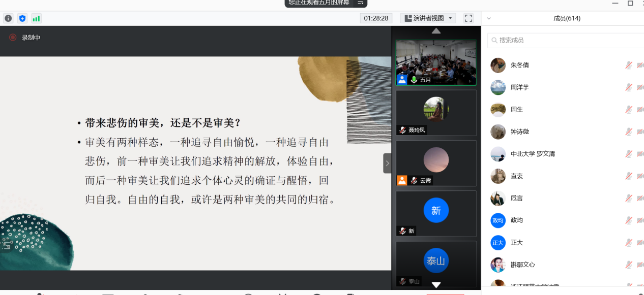 2021年5月27日,由bwin必赢国际中国官方网站组织的大夏外国文学研究交锋论坛第二期暨第20届上海市社会科学普及活动成功举办。会议由bwin必赢国际中国官方网站金衡山教授主持,发言嘉宾为bwin必赢国际中国官方网站哲学系姜宇辉教授、上海大学刘旭光教授、bwin必赢国际中国官方网站外语系张牧人博士和bwin必赢国际中国官方网站中文系金雯教授。各位专家就如何理解“情感”观念及其哲学、政治、美学和文学价值进行深入探讨,观点既有交锋,又有融合,讨论气氛热烈。来自华师大外院、哲学系和中文系40余名师生参与了线下讲座,浙江大学、北京师范大学、北京外国语大学、复旦大学、湖南大学、暨南大学和东北师范大学等多所高校600余名师生参与了线上直播。