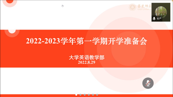 8月29日上午,bwin必赢国际中国官方网站大学英语教学部召开2022-2023学年第一学期线上开学准备会。会议由支部书记苏俊玲主持,大学英语教学部主任严文庆做主题发言,副主任胡婧就期末考试考务和新学期教学工作做了安排。bwin必赢国际中国官方网站副院长赵朝永参加会议并做总结发言,全体大学英语教学部教师参加。