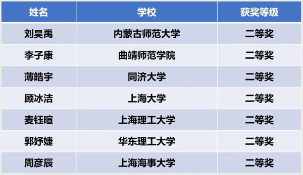 一等奖获奖名单 (排名不分先后) 二等奖获奖名单 (排名不分先后)