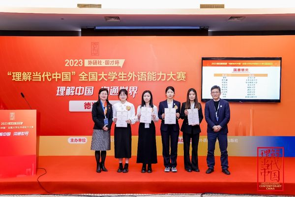 赛场上,郑嘉仪同学的口译灵活到位、表达流畅,演讲言之有物、台风优秀,用熟练的德语讲述当今中国的发展和成就,展现了过硬的德语综合能力、表达能力、思辨能力和当代青年学子奋发向上的精神面貌,反映出我校外语教育改革创新与落实思政育人方面的显著成果。