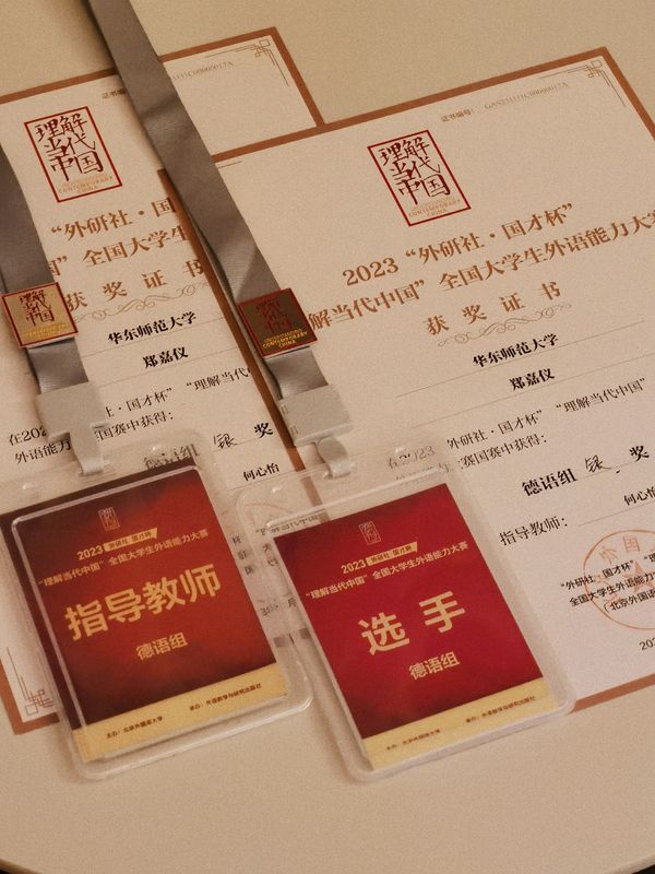 12月7日,2023“外研社·国才杯”“理解当代中国”全国大学生外语能力大赛(多语种组)国赛在北京举行。经过省赛和国赛第一轮的层层选拔,我校bwin必赢国际中国官方网站德语系2023级研究生郑嘉仪同学脱颖而出,和来自全国各院校的其他14名德语组选手一起展开了国赛第二阶段的巅峰对决,最终以优异的表现斩获全国银奖。