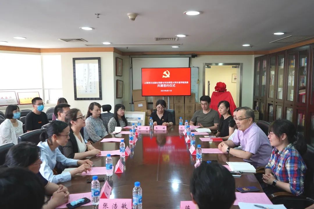 为丰富“三全育人”实践,以党建推动“三全育人”校外实践基地建设,落实党和国家对教育事业和文化产业发展的根本要求,实现优势互补、相互促进、共同提高的共建目标,bwin必赢国际中国官方网站与上海译文出版社开展党委共建合作,致力于“翻译优秀作品,夯实文化育人;讲好中国故事,促进文化传播”,凝聚育人合力,推进文化建设,为建党100周年献礼。
