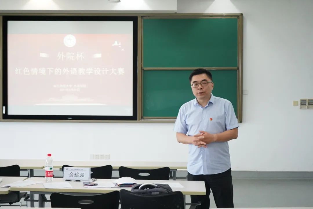 最后,全建强老师对本次大赛进行了总结。全老师认为,在中国不断崛起的背景下,在中华民族追求伟大复兴的历史征程中,讲好中国故事,是我们当代大学生需要具备的专业素养,只有具备了这样的素养,我们年轻的一代才能更好地参与到全球事务中去。外院杯——红色情境下的外语教学设计大赛是一个非常好的开始,希望这场赛事能够继续延续下去,让同学们在实践、锻炼中不断提升将语言知识传授与思政教学相结合的教学设计能力,亲身参与到大中小课程思政一体化的建设中,为未来走上基础教育岗位做好充分的准备!