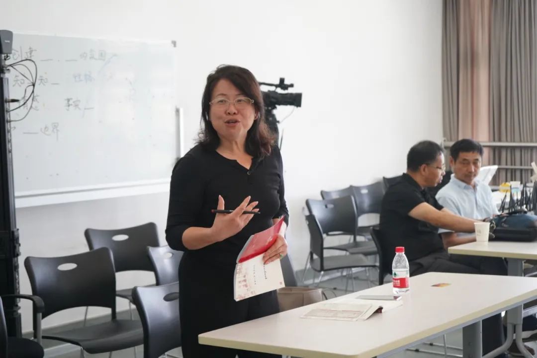 随后,英语系和翻译系联合教工党支部的刘森老师作为教师代表发言。她提到,在建党百年之际观摩这场别开生面的外语教学设计大赛,既见证了同学们将外语教学与红色情境相结合的非凡创造性,也增长了党史知识,着实意义深远。