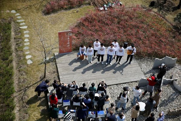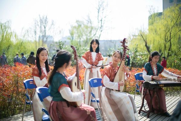 “不到园林,怎知春色如许”。由校昆曲社同学带来的《牡丹亭》遏云绕梁、回味悠长,更有民乐清雅、民舞蹁跹,书法遒劲,将盎然春日渲染上中华传统文化的无限魅力。而后,bwin必赢国际中国官方网站西班牙语专业的同学带来一曲嘹亮的小合唱《同一片天空》,又将观众带领到世界文化的殿堂……捐建仪式开始前,同学们多元的文化表演令人印象深刻。