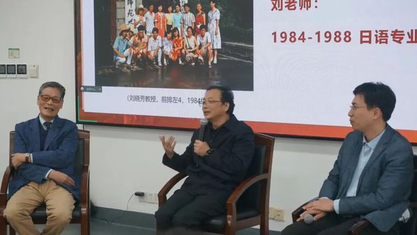 刘晓芳教授回忆了过去在丽娃河畔学习的日子,并为我们讲述了当年日语系的教师们和同学之间的小趣事,刘教授说他非常怀念过去充满烟火气息的生活。在讲述日语学习的故事时,刘晓芳教授提到自己重新回归日本文学教学工作时,还是拿出了本科学习期间外教使用的教材翻看学习。最后,刘晓芳教授为同学们送上寄语:希望同学们对自己的大学生活有规划,要充分利用综合性大学的优越环境,积极地参与到学习和活动之中,并有意识的培养自己的思辨能力。此外,要广泛地去了解多方面的知识,要多去了解自己的国家和文化。