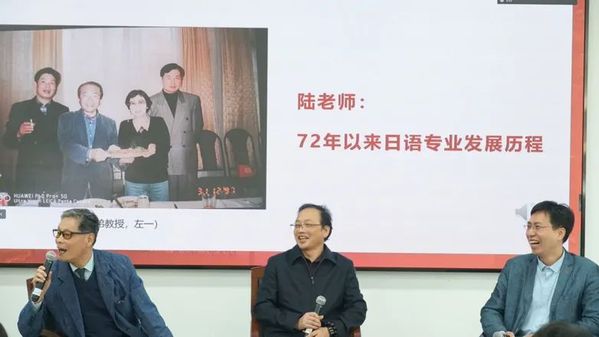 陆留弟教授首先回忆了自己1972年进入华东师大学习以来的历程,提到当时虽然处于教师、教材缺乏,条件艰苦的环境下,但老师们认真执教的精神让他印象深刻,学生们走到哪问到哪,再加上不同环境出身的老师们共同教学,成就了日语系一批早期的人才。随后,陆留弟教授介绍了日语专业发展的三个阶段:1972-1983年是日语专业的初创阶段,当时就是一个很有温度的团体,老师团结协作,用心教学,学生刻苦学习;90年代到2000年中期的第二阶段,日语系成立后广招贤达,发展壮大,但依然秉持认真执教,一丝不苟的教学精神,并发扬着日语系爱护学生的优良传统;到2010年后,日语系建设一流学科,走向高质量发展,陆教授强调今后更要在高质量的发展中培养出更多人才。最后,陆留弟教授寄语日语系学子们:日语学习是一个复杂的过程,但不要畏惧,要拿出自己的一套学习方法去攻破难关。