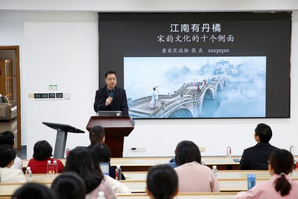 黄岩区政协党组成员、秘书长张良作主题为“江南有丹橘:宋韵文化的十个侧面”文化讲座,讲述千年黄岩的宋韵风采。在永宁橘园”捐建仪式暨植树文化节上,学生们排演的中外文化节目让中华传统文化与世界文化相互碰撞,在盎然春意中融汇成一道独特的风景。文化活动为学生营造了独特的沉浸式课堂,鼓励外院学子打开视野、拓宽格局,把优秀传统文化中具有当代价值、世界意义的文化精髓提炼出来、展示出来,彰显时代精神、文化自信,在日后对外交流中讲好中国故事。