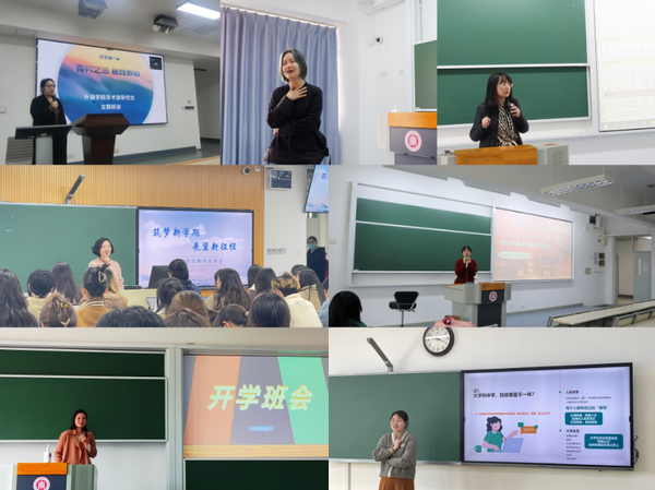 法语系主任金桔芳、教师解华,日语系系主任尤海燕、教师尹松、乔颖、金晶,德语系教师尤岚岚,英语系教师张牧人等分别走进各专业本科生春季学期首场班会,与学生畅谈大学学业发展与新学期身心调适,寄语同学们立足专业学习,积极探索、开拓视野,在追求个人目标的同时,也关注自身健康、关心他人,学会调节情绪、平和应对挫败,在社会中找到适合自己的落足点和生长点。