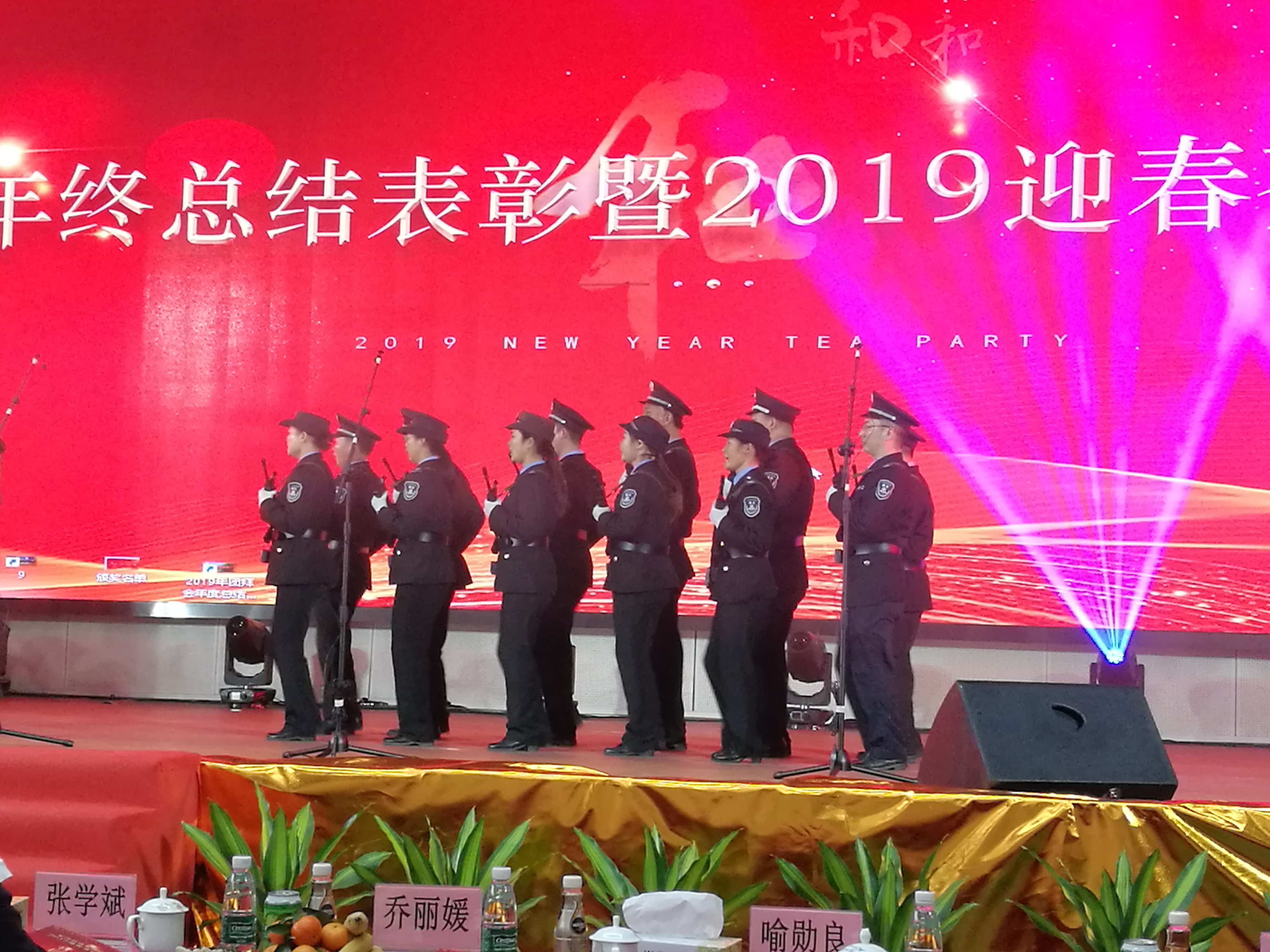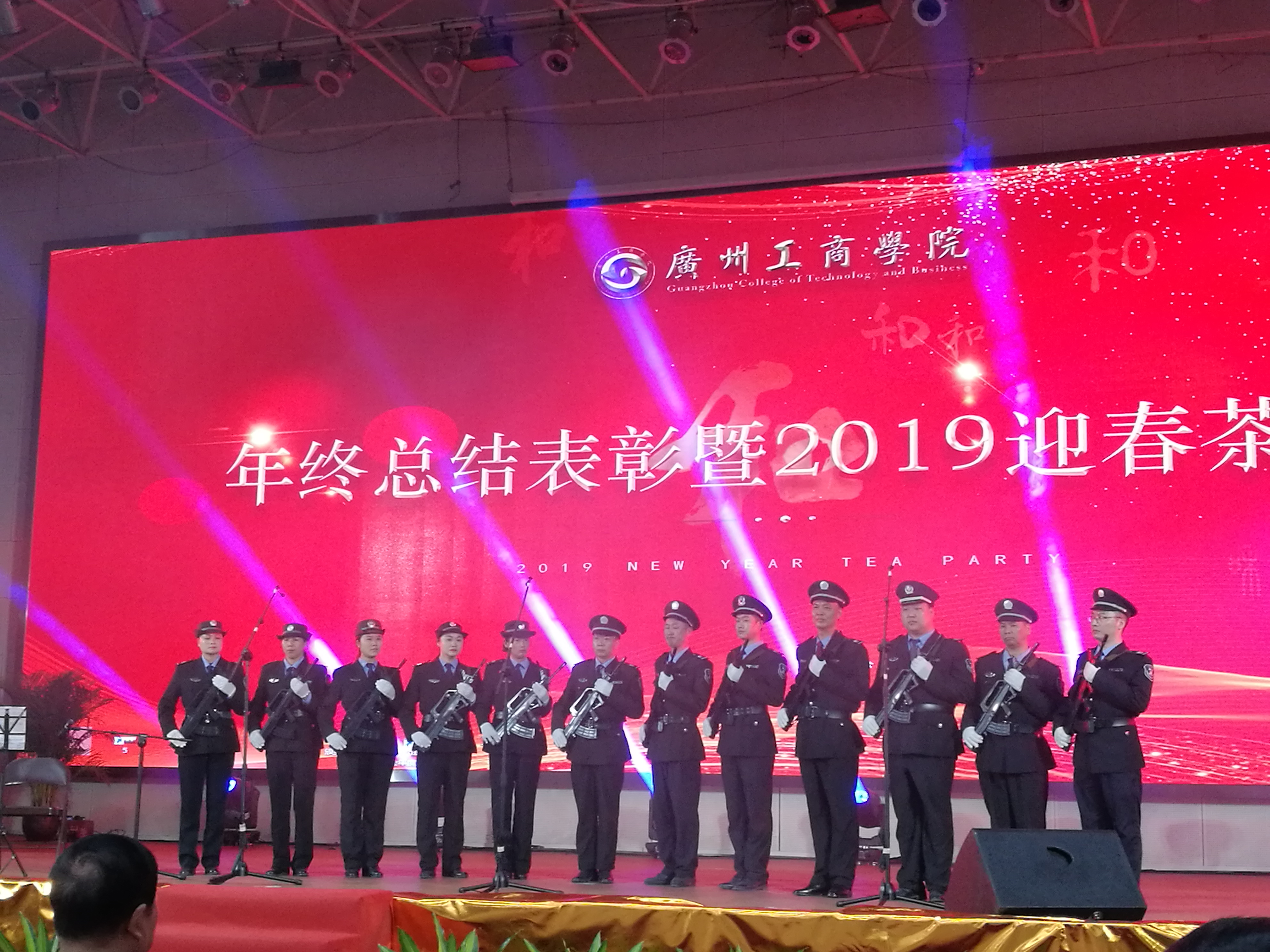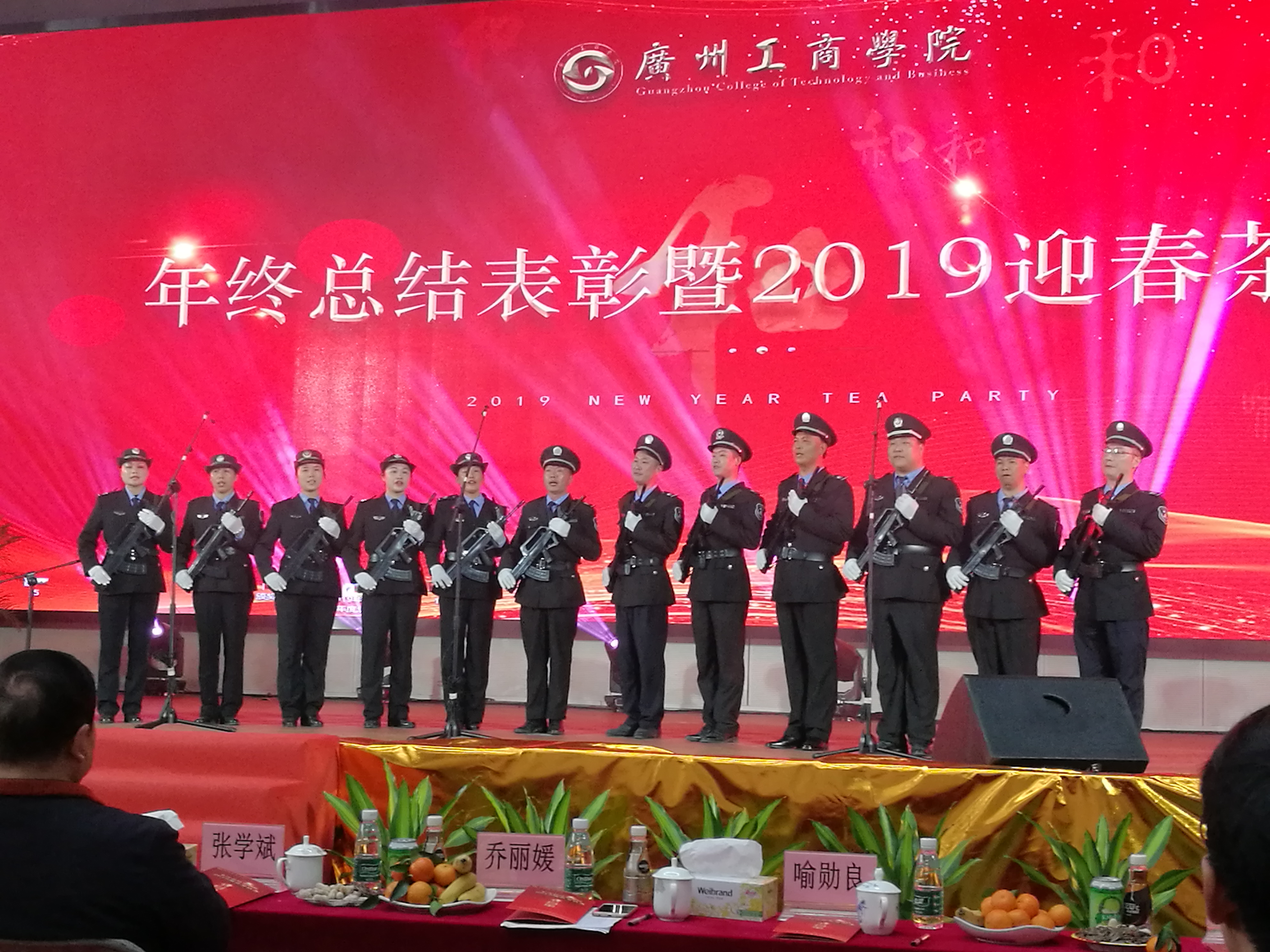 2019年1月11日,在“kaiyun开云官方网站年终总结暨2019迎春茶话会”上,学院保卫处所属校卫队员出演的男女声合唱《打靶归来》第四个登台亮相,惊艳全场一千余名教职员工,队员们精神饱满、发挥稳定,充分展现了校卫队员应有的风采,赢得了全场热烈的掌声!这是我院校卫队员第一次在本院大型活动舞台上展示风采。