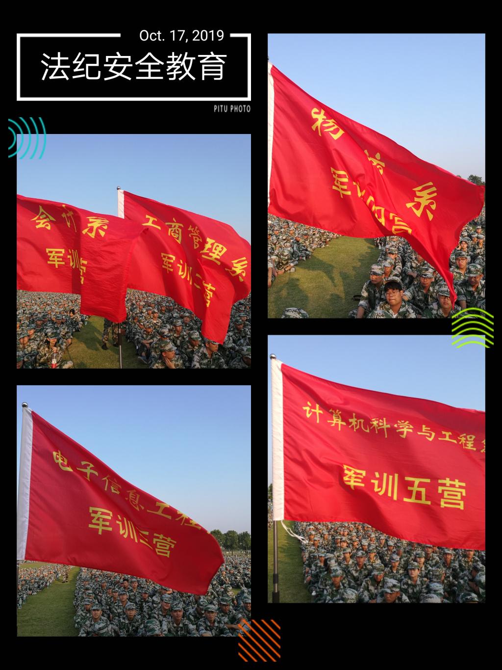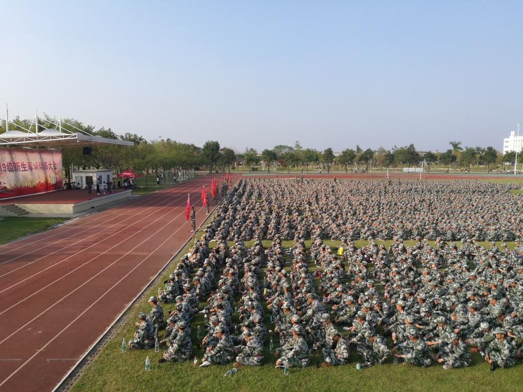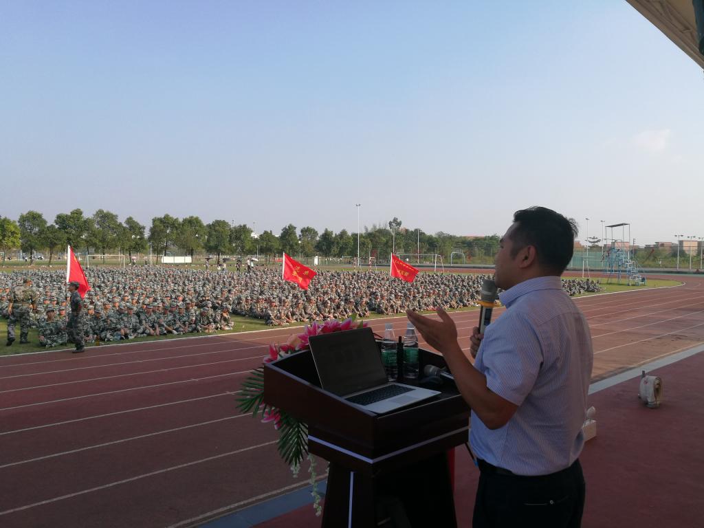 10月17日下午,我院2019级新生军训第二团4100多名新生在三水校区田径场,听了一堂形象生动的法纪安全教育课。