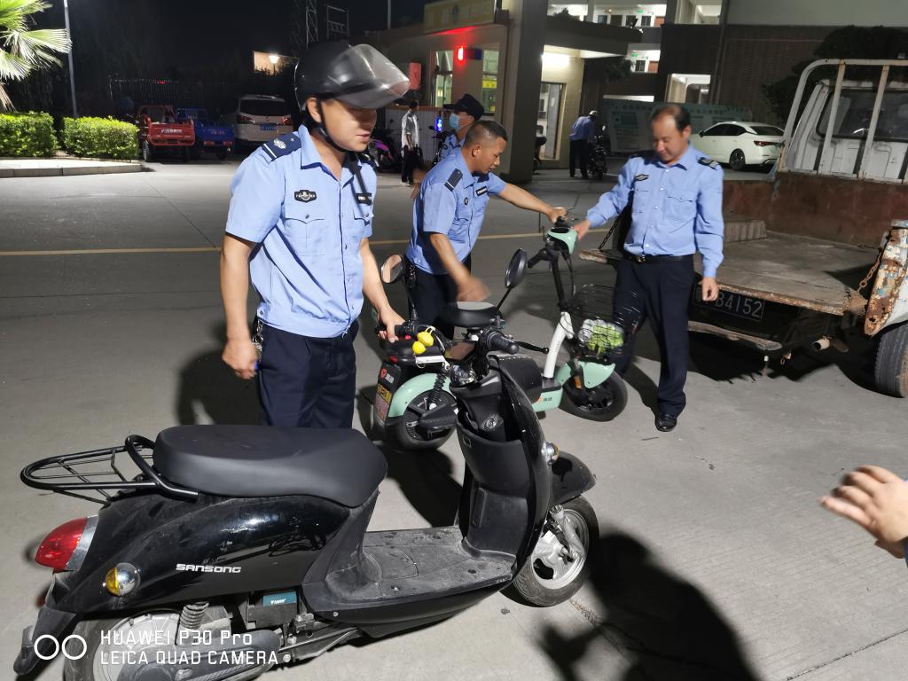 3月16日晚19时,保卫处(三水校区)全员出动,在校园内设三处卡点,对行驶在校园内的车辆进行突击检查。根据《广东省道路交通安全条例》和《校园交通安全管理规定》,按照《关于禁止学生在校园内骑行摩托车、电动车、滑板车的通知》精神,对违规的摩托车、电瓶车、电动滑板车进行了查扣。至当晚突击行动结束,查扣各类违规车辆80台。