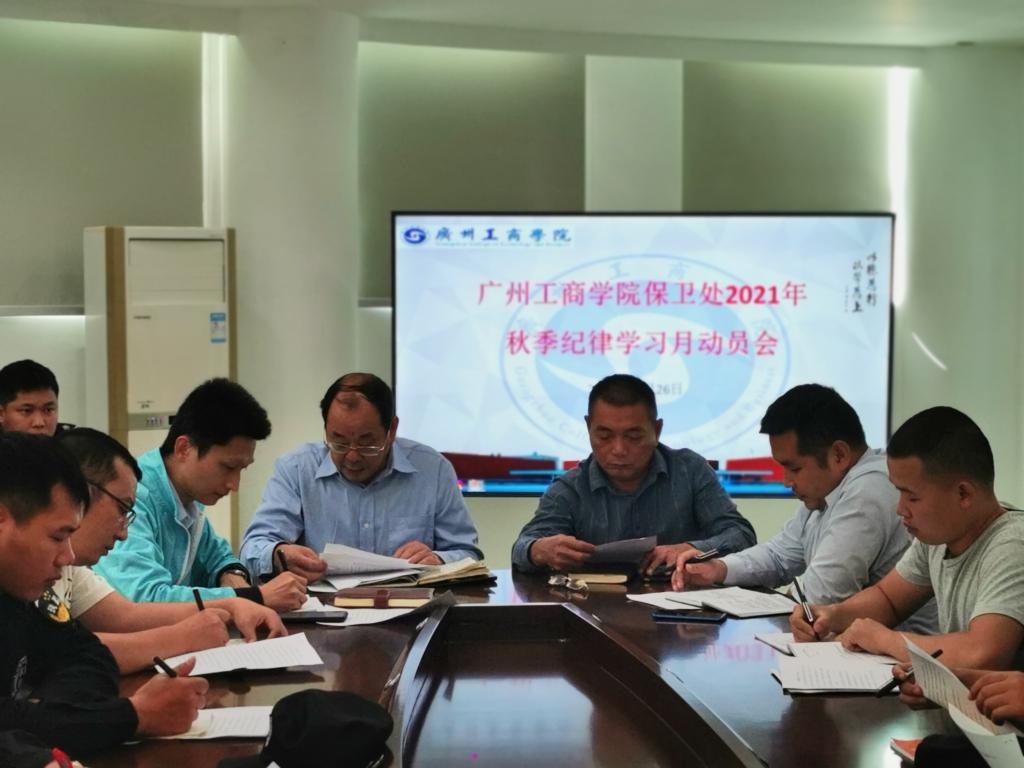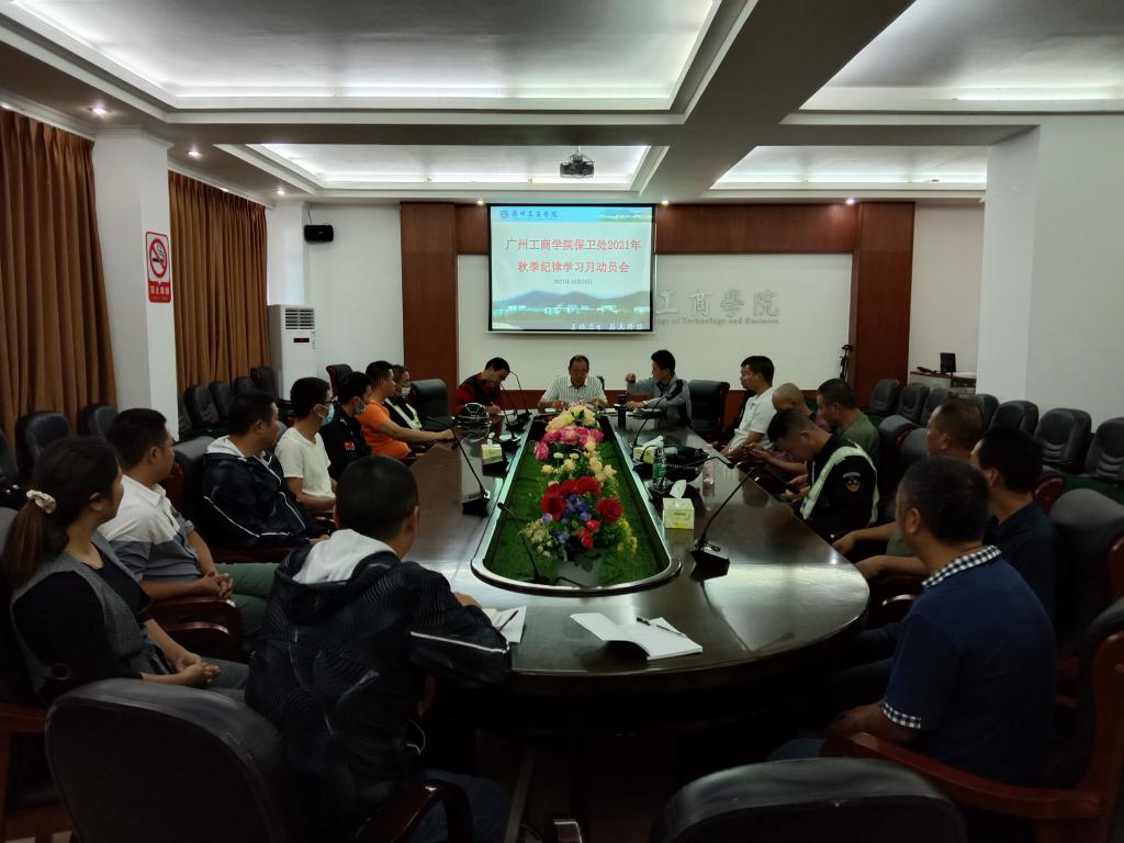 10月18日、26日,保卫处分别在花都、三水两校区召开“保卫处纪律教育学习月”动员会,会议由保卫处副处长毛拓艺(花都校区)、詹建业(三水校区)分别主持,保卫处全体人员参加了会议,保卫处林剑平处长在会上作动员讲话。