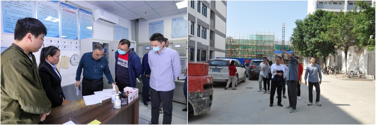检查消防控制室每日值班情况(左)检查施工场所的消防情况(右)