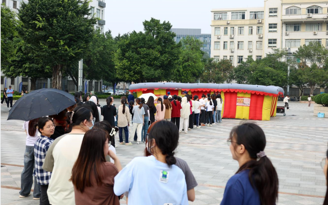 在镜湖广场,狮岭消防中队的消防员对灭火器的使用进行了讲解和示范,并对现场的学生进行了灭火器使用实操训练。
