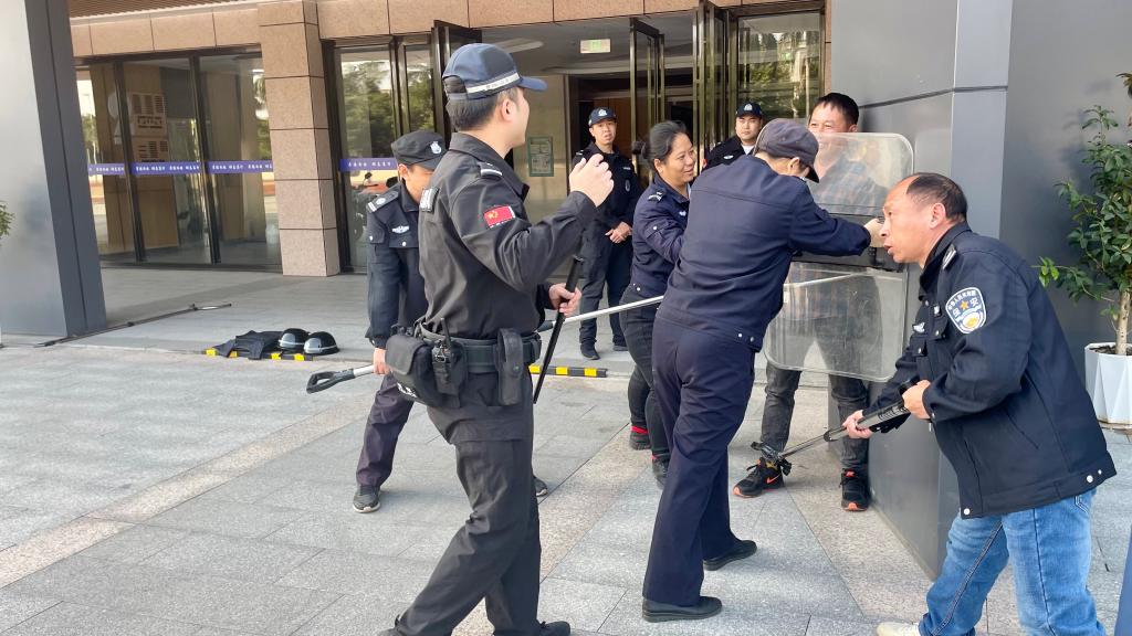 在培训中,乐平派出所防暴队详细解析了当前社会常见的恐怖活动和暴力行为类型,重点传授了识别可疑行为、预防暴力事件发生的方法,以及在突发暴力事件发生时的正确防护措施。理论培训结束后,防暴队组织了一场应急处置实战演练,模拟了校园内遭遇暴力恐怖袭击的场景。校卫队员将所学的理论知识与实践相结合,顺利执行了紧急疏散、及时报警、迅速封锁现场、妥善救护伤员等关键环节。