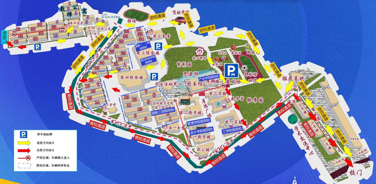 温馨提示:新生报到期间,学校周边及校内人流车流较大,建议大家认真了解校园交通最新指南,避免拥堵哦!