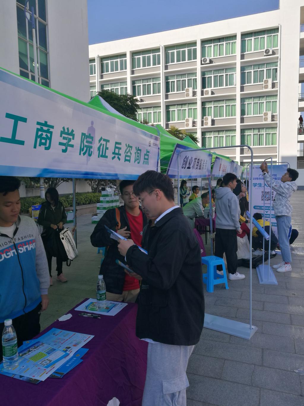 又是一年征兵季,11月28日下午,我院保卫处(武装部)在三水校区厚德广场开展了一次征兵宣传活动。在征兵宣传咨询点,有不少学生前去了解适龄青年应征入伍的基本条件,应征入伍流程、大学生入伍的优惠政策。保卫处詹建业副处长带领工作人员,给同学们做了耐心细致的解答。