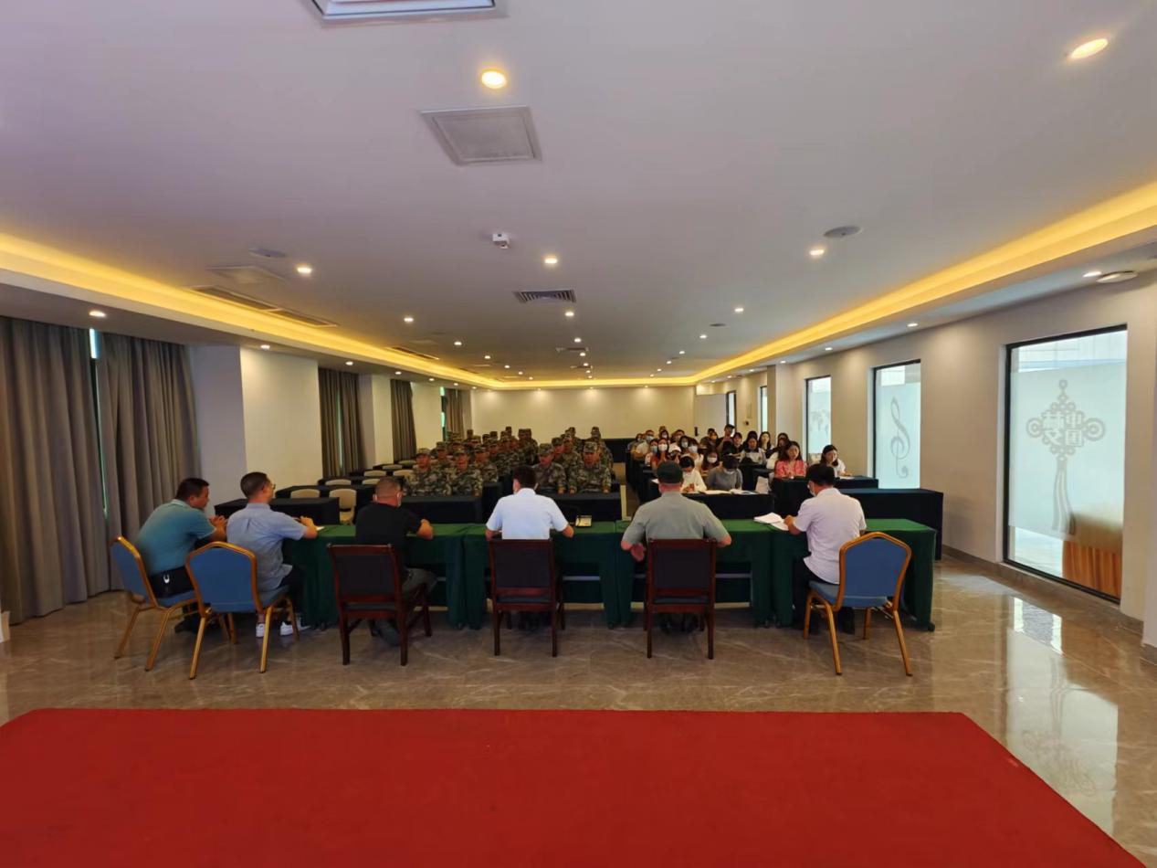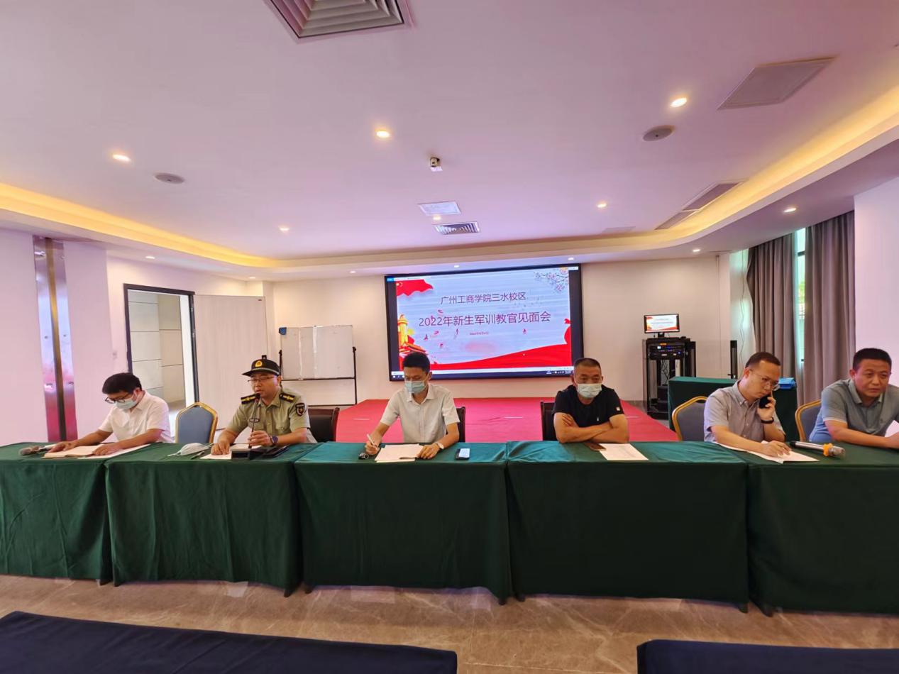 2022年9月4日16时许,kaiyun开云官方网站三水校区2022年新生军训教官见面会在国际交流中心三号楼5号会议室召开。会议由保卫处副处长吴华光主持,参会成员有保卫处处长毛拓艺、三水管委会副主任何沛强、学生处副处长苏建贤、花都区武装部王朝峰参谋,保卫处、学生处干事,各二级学院学工办主任、2022级新生辅导员及所有军训教官。
