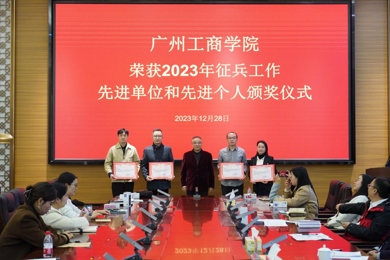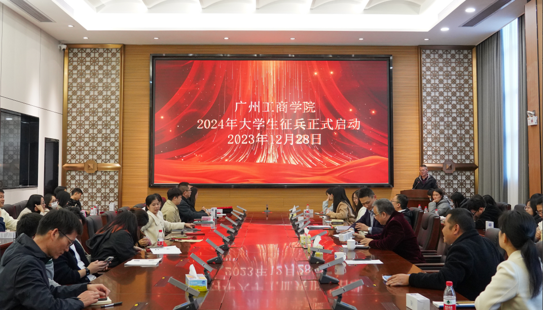 【本网讯】12月28日下午,学校武装部在花都校区图书馆412会议室召开2023年征兵工作表彰大会暨2024年征兵启动仪式。学校党委书记张振超、学校党委副书记、纪委书记、副校长朱特威、学校武装部全体成员、各二级学院征兵工作负责人和全体毕业班辅导员参加了会议。会议由朱特威副校长主持。