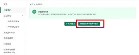 6. 若需参与2026年参军报名,点击“继续进行本年度参军报名”按钮,进一步完善个人信息。