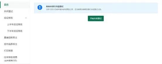 4. 登录系统后,点击右侧“开始兵役登记”,正式进入登记环节。