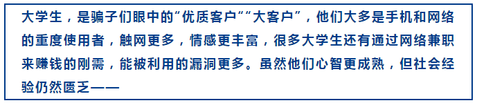 骗术一:虚假贷款类诈骗。诈骗分子常以“免抵押、低利息、快速放款”为噱头吸引学生贷款,进而骗取押金、保证金、解冻金等。