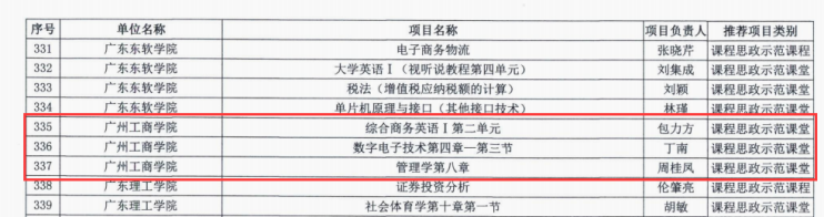 【本网讯】近日,广东省教育厅公布了广东省2020年度课程思政建设改革示范项目名单,kaiyun推荐的3个示范课堂全部获得立项,包括外语学院包立方老师的“综合商务英语I Unit2 You Are what You Eat”、工学院丁南老师的“数字电子技术第四章第三节7段数码管显示译码电路”和周桂凤老师的“管理学第八章激励”。