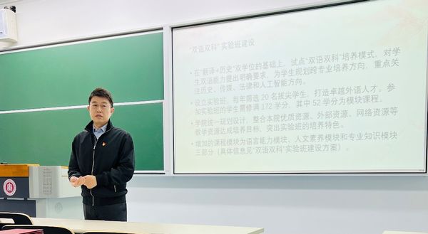 杨延宁还介绍了学院 “双语双科”实验班的建设思路,希望可以在“翻译+历史”双学位的基础上,有效整合校内外优质资源,关注学生双语能力培养、人文素养提升和专业知识拓展,着力培养能够在关键领域发挥影响力的卓越外语人才。