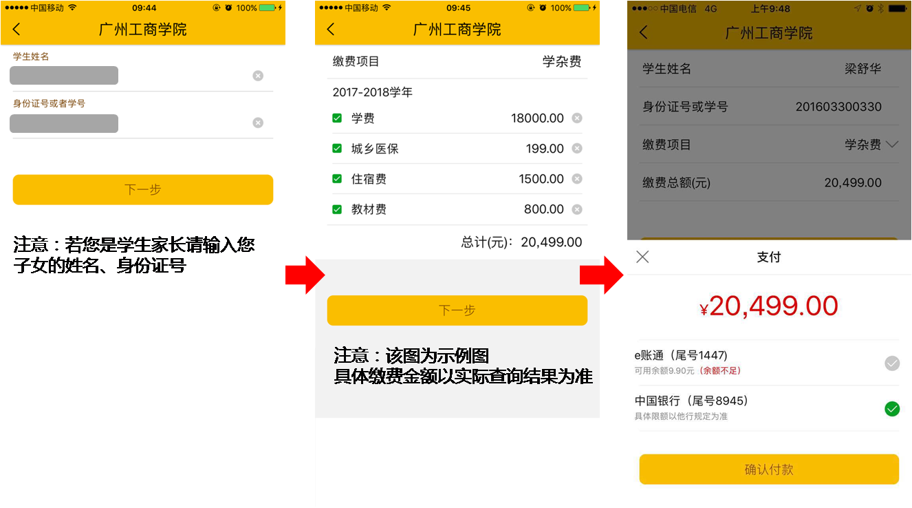 Ø 学生本人缴费:凭学生本人身份证及同名银行卡进行APP注册,按指引缴费。