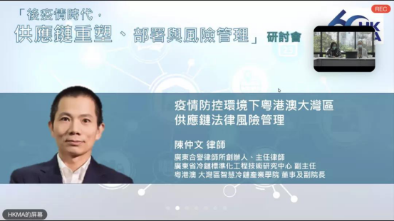 会议中,陈仲文律师为同学们用法律的视角分析供应链中存在的法律风险,介绍了疫情防控下粤港澳大湾区供应链法律风险管理的具体内容。讲述了一条供应链对于一个企业的影响,并且提出了这场疫情对于供应链来说,是一种危机挑战,更是一场机遇。