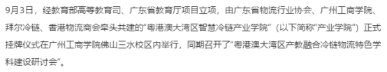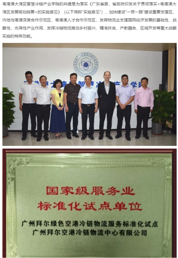 广州拜尔冷链公司报道粤港澳大湾区智慧冷链产业学院挂牌