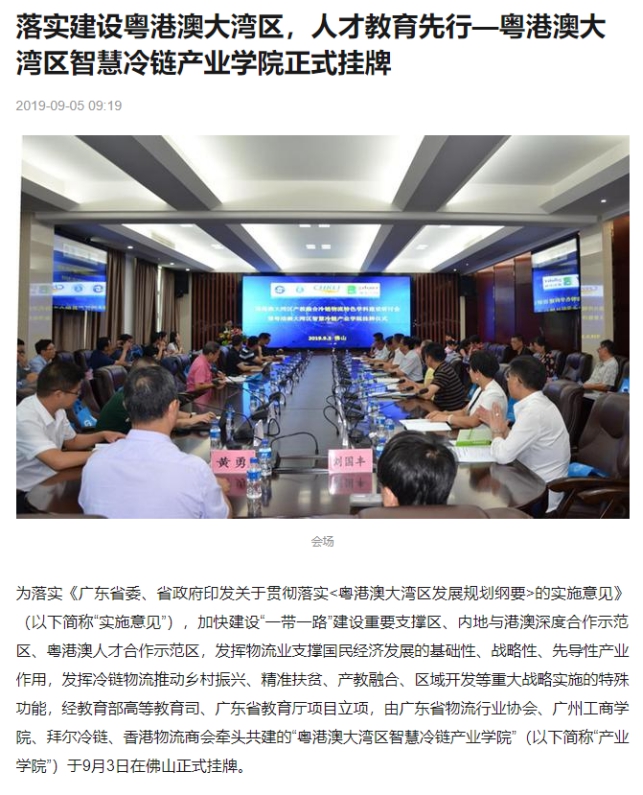 香港物流商会:粤港澳大湾区智慧冷链产业学院在广东佛山正式挂牌