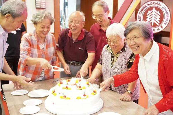 重阳节为逢十的退休教职工集体过生日,是外院重阳敬老的惯例。在《祝你生日快乐》的乐曲中,学院领导为今年恰逢60、70、80、90、100岁的寿星送上祝福贺礼,老寿星们亲自切蛋糕,邀请在场的与会者一起分享。