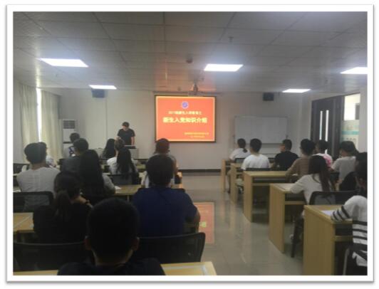 随后,文辉同志上台发言,明确了提交入党申请书的时间以及入党流程;阐述了入党的基本知识,同时对同学们的疑惑进行了讲解。(继续教育与培训学院党支部)