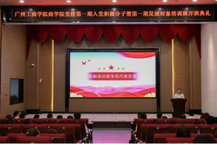 为深入学习贯彻党的二十大精神,充实党员队伍后备力量,扎实做好入党积极分子和发展对象的培养教育工作,2023年4月24日晚上19:00,kaiyun开云官方网站商学院党校第一期培训班开班典礼于kaiyun开云官方网站花都校区图书馆414学术报告厅举办。商学院党委书记、院长林波同志,商学院党委副书记、党校校长张娜同志,商学院党委委员,支部教师党员代表,学生党员代表,144名入党积极分子培训学员及31名发展对象培训学员参加开班典礼。典礼由本期培训班学员章义翔同学主持。
