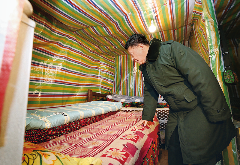 中华民族传统节日农历春节来临之际,中共中央总书记、国家主席、中央军委主席习近平来到四川考察调研,看望慰问各族干部群众,向全国各族人民致以美好的新春祝福。这是2018年2月11日上午,习近平在凉山彝族自治州昭觉县三岔河乡三河村贫困户吉好也求家中看望。