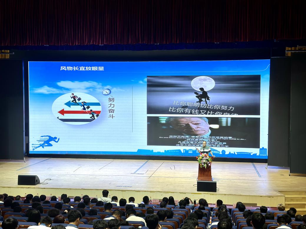 宋锋华教授围绕着"筑梦广工商·从工学院扬帆起航"这一主题展开讲述,他指出,进入新时代,党和国家对科学知识和卓越人才的渴求比以往任何时候都要更加强烈。因此,作为广工商的新学子,我们要有明确的大学观,学习新的知识,研究新的学问,以梦为马,不负韶华。