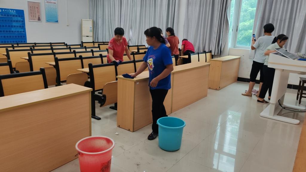 后勤处秉承服务至上的理念,放假不松懈,充分发挥党员干部服务意识,组织人员对校园运动设施进行了全面维护和优化,清洗教室和学生公寓的空调设备,为即将入学的同学创造了干净、舒适的生活学习环境。