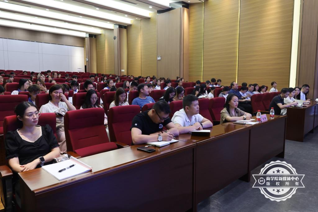 赓续红色血脉,传承红色基因一直是我院教书育人,教人成材的目的与根本。为使学生更好地学习领悟党的战略宏图,贯彻党的领导方针,提升思想高度,商学院党委书记、院长林波教授于2024年10月21日晚上19:00-20:30在图书馆414报告厅以解读新质生产力为主线,徐徐展开商学院全体党委干部、本期党课入党积极分子、发展对象学员们新学期的第一堂思政课。